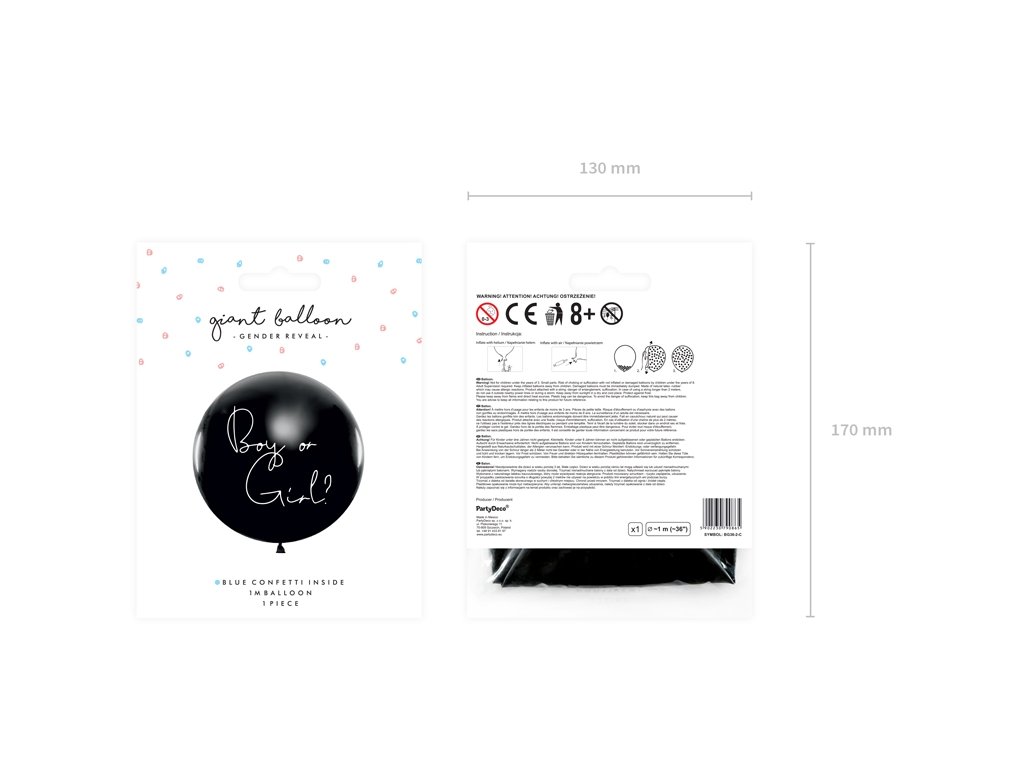 Przygotowujesz uroczystość na przywitanie nowego członka rodziny, podczas której planujesz zdradzić płeć dziecka? Szykujesz niezapomnianą dekorację imprezową? Zaskocz gości tym balonem, który jest wypełniony niebieskimi konfetti. Ten balon imprezowy możesz napompować powietrzem lub helem.