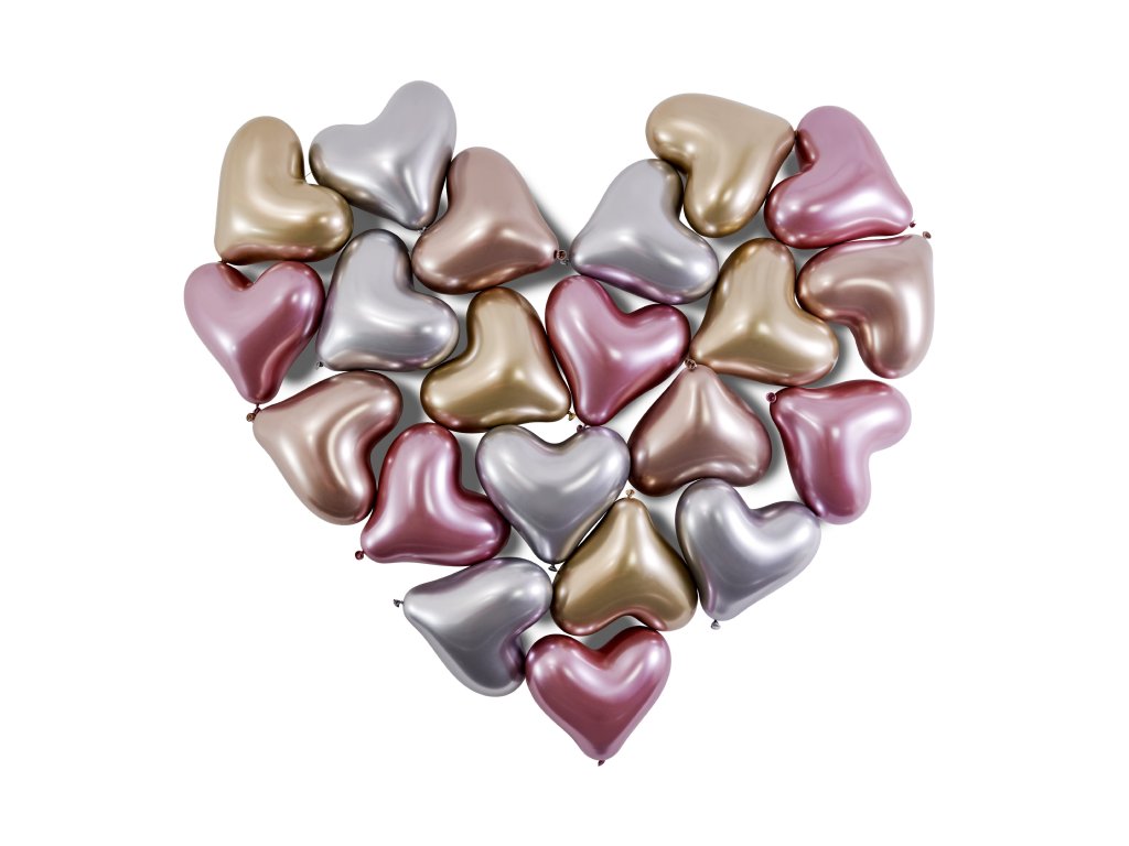 Balon chromowane serduszka 25 cm Shiny mix 25 szt