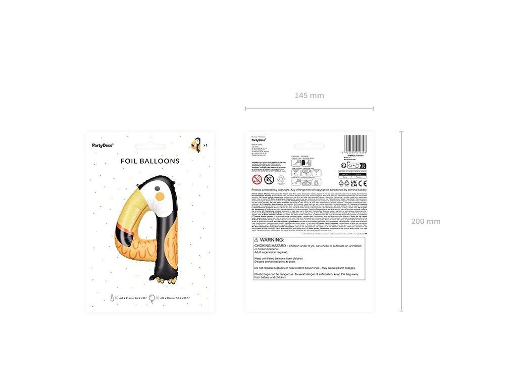Balon foliowy - cyfra 4, tukan