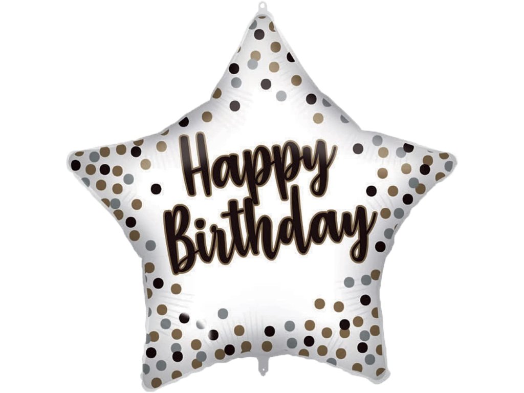 Balon foliowy - Happy Birthday gwiazda biała 46 cm