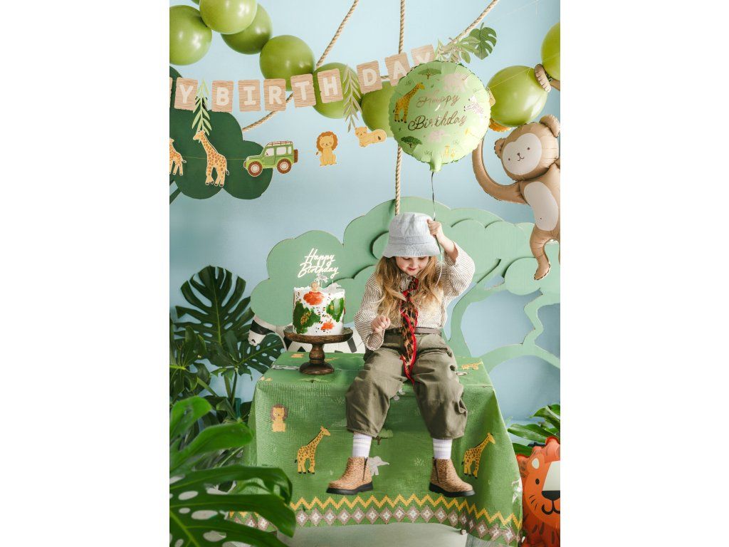 Foliowy balon Happy Birthday Safari o średnicy 35 cm to wesoła dekoracja, która świetnie ożywi każde przyjęcie urodzinowe. Kolorowy motyw safari w połączeniu z napisem „Happy Birthday” tworzy radosną atmosferę, idealną na dziecięce imprezy oraz tematyczne uroczystości. Balon nadaje się do napełniania powietrzem lub helem i po napompowaniu długo zachowuje swój kształt i kolory. Doskonale sprawdzi się jako samodzielna dekoracja lub element większej balonowej aranżacji.