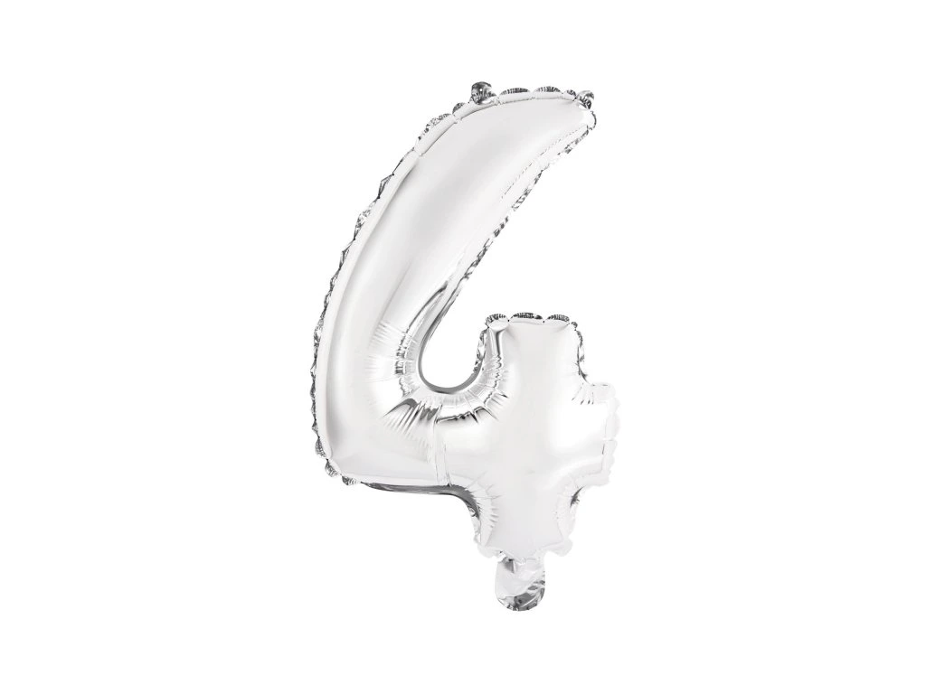 Balon foliowy mini - cyfra 4, srebrna, 33 cm