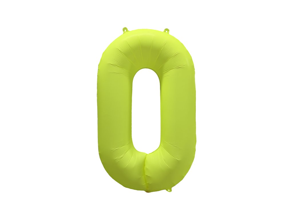 Balon foliowy urodzinowy cyfra 0 - neonowożółty 86 cm