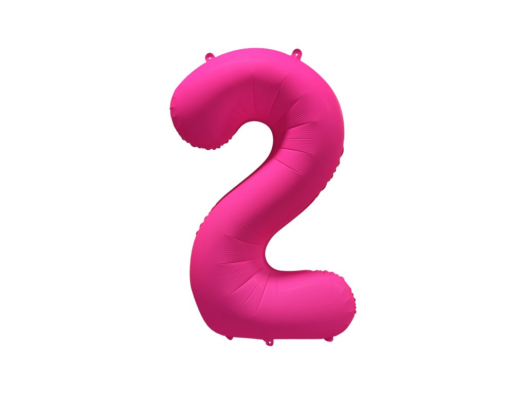 Balon foliowy urodzinowy cyfra 2 - neonowy róż 86 cm