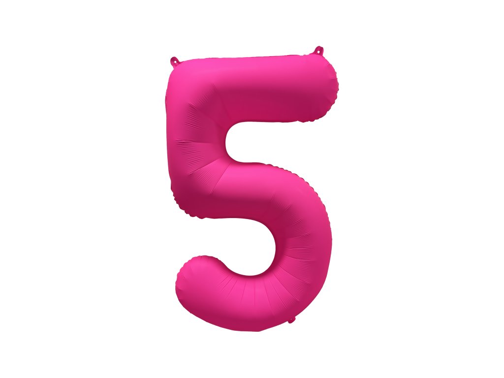 Balon foliowy urodzinowy cyfra 5 - neonowy róż 86 cm