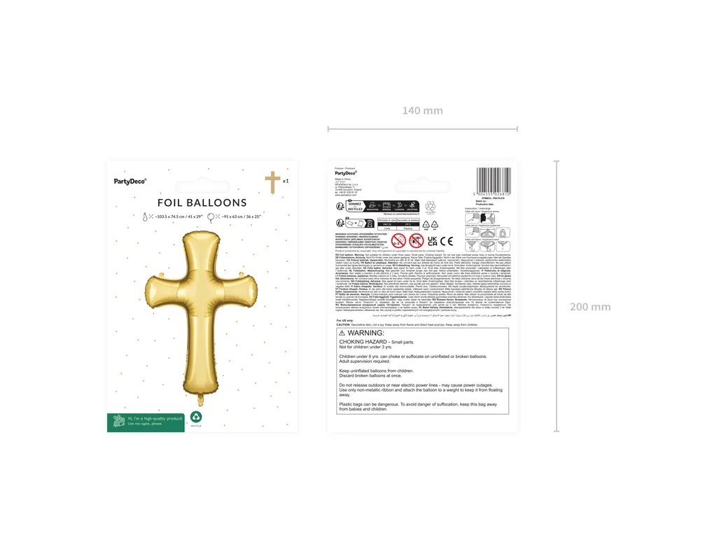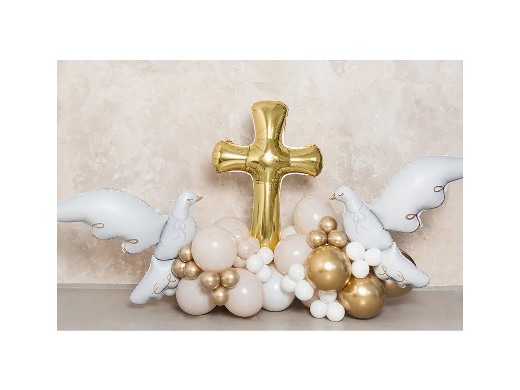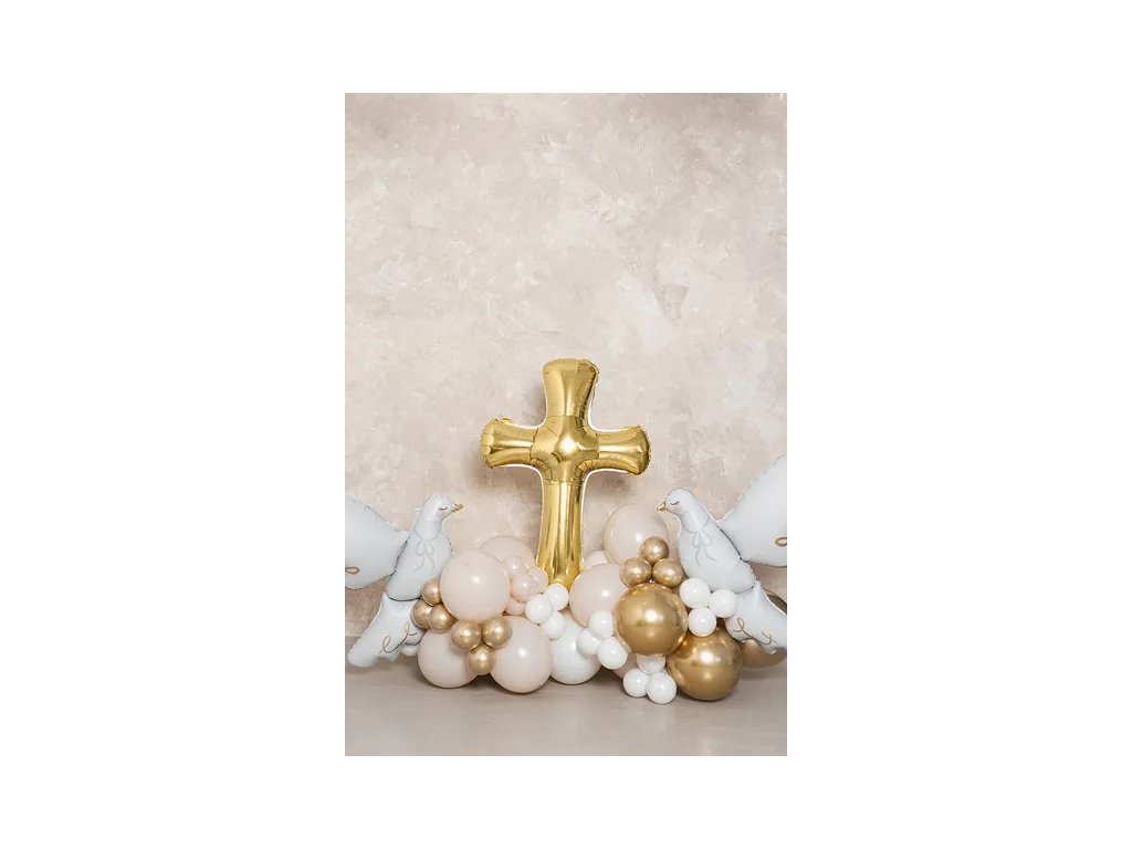 Impreza na horyzoncie? Przygotuj się na złoty strzał w dziesiątkę! Nasz foliowy balon w kształcie krzyża (91 x 63 cm) rozświetli każdą imprezę tak, że nawet anioły będą zazdrościć. Niezależnie od tego, czy planujesz chrzest, bierzmowanie, urodziny czy po prostu małą rodzinną uroczystość, ten balon to złoty gwóźdź programu! Połącz go z innymi balonami, a Twoja impreza będzie miała „krzyżyk na właściwym miejscu”. Przygotuj się na falę radości, śmiechu, a może nawet kilka złotych zdjęć do rodzinnego albumu. Z tym balonem każda uroczystość stanie się prawdziwie niebiańską imprezą!
