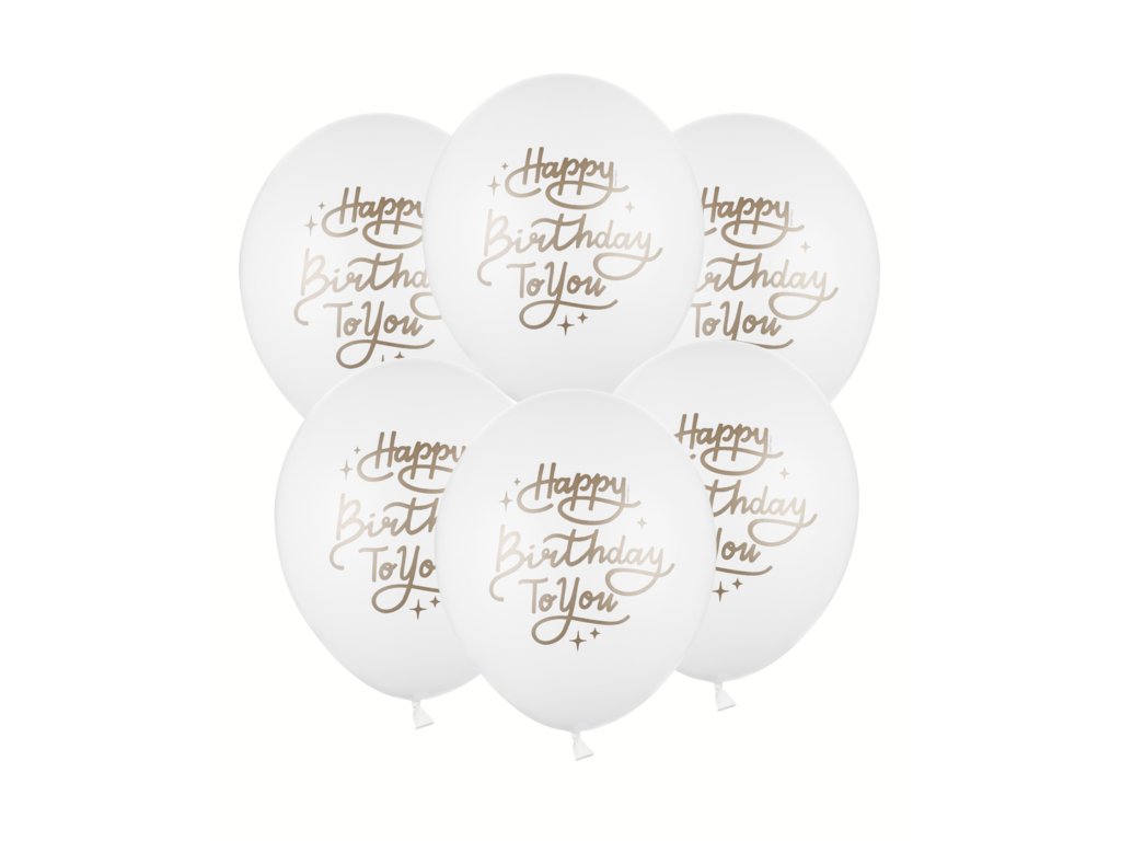 Balon metaliczny biały - Happy Birthday To You 30 cm 50 szt.