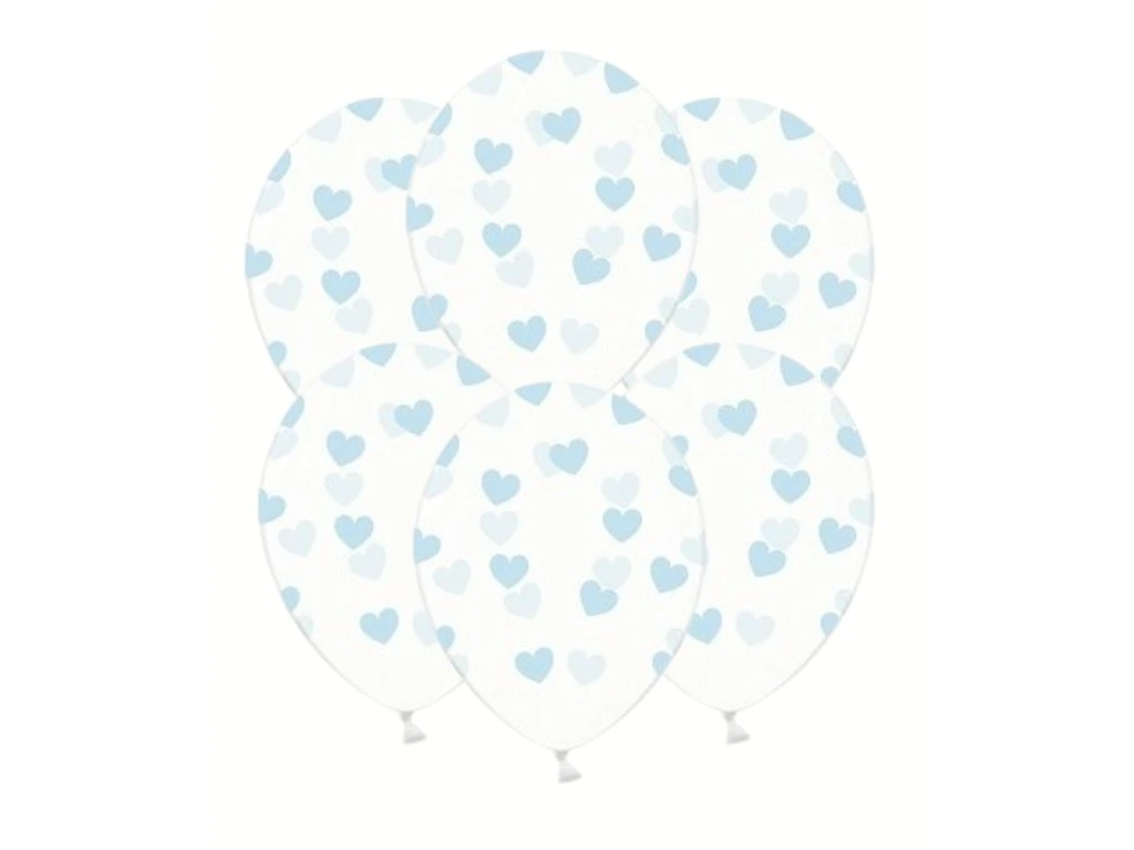 Balon - przezroczysty z niebieskimi serduszkami 50 szt.