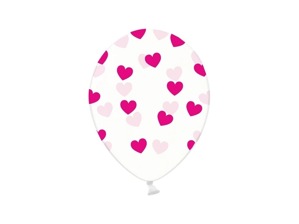 Lateksowy balonik z nadrukiem różowych serc idealny do ozdobienia wesela albo imprezy z okazji urodzin. Balony imprezowe są wysokiej jakości i można nadmuchać je powietrzem lub helem.