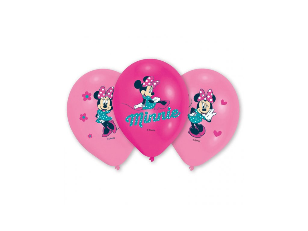 Baloniki z nadrukowanym motywem Minnie. Twórz wspaniałe balonowe dekoracje na przyjęciu dla dzieci albo imprezie urodzinowej z pomocą baloników Minnie. Można je napompować powietrzem lub helem.