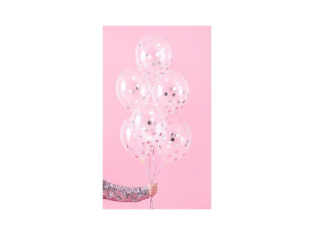 Balony z konfetti - srebrne 6 szt.