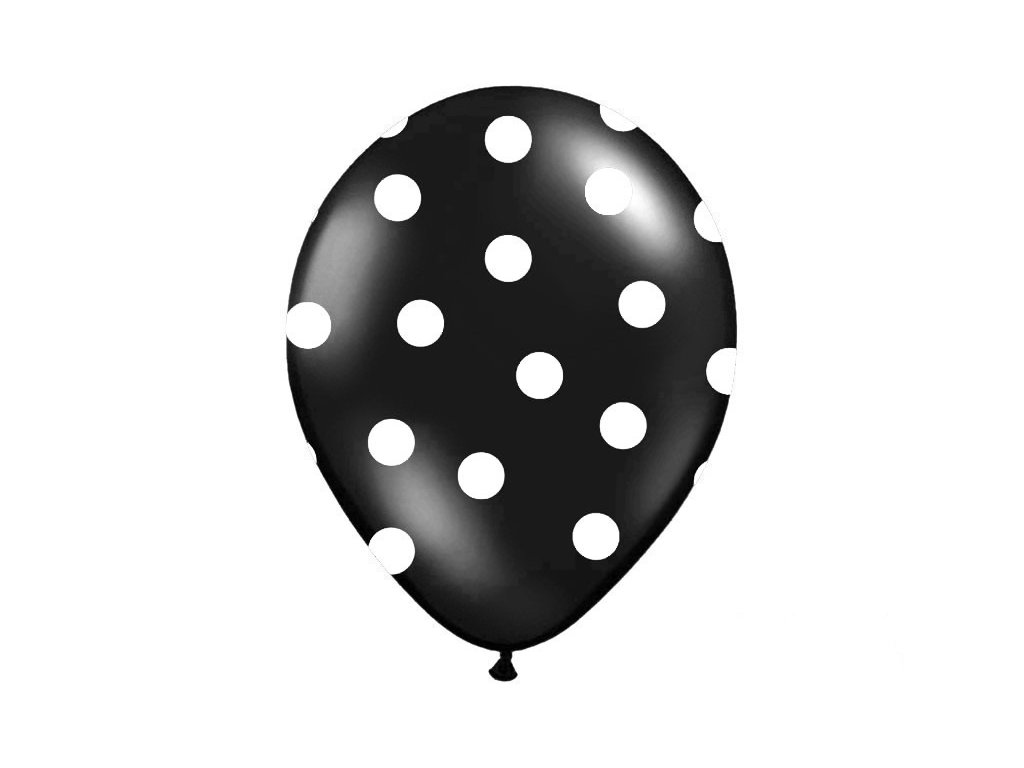 Balonik z czarnym nadrukiem w kropki. Idealna ozdoba każdej imprezy i przyjęcia. Odpowiedni do dmuchania powietrzem i helem.