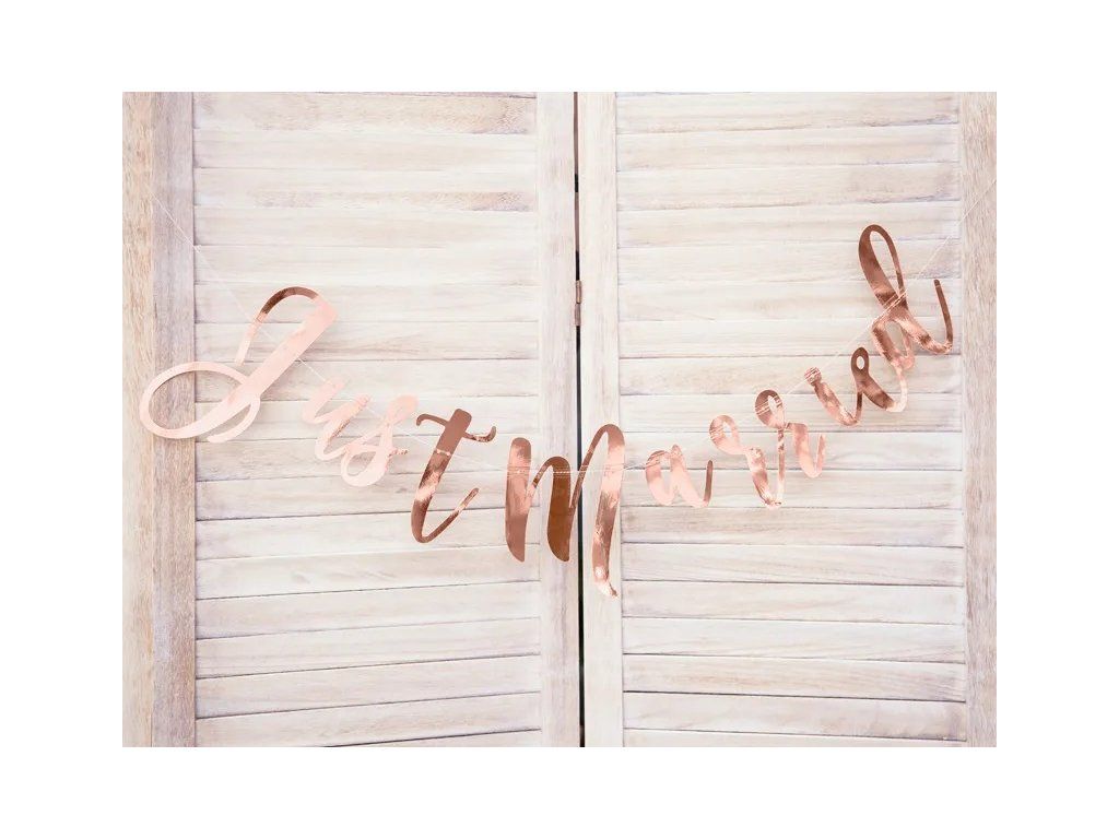 Świętujcie początek Waszej wspólnej przygody banerem Just Married. Baner wykonany jest z różowo-złotego lustrzanego papieru i jest doskonałym dodatkiem do weselnej dekoracji. Niezależnie od tego, czy ozdabiacie samochód ślubny, przestrzeń, czy uwieczniacie niezapomniane chwile, ten dodatek doda Waszemu ślubowi wyjątkowego akcentu romantyzmu i radości.