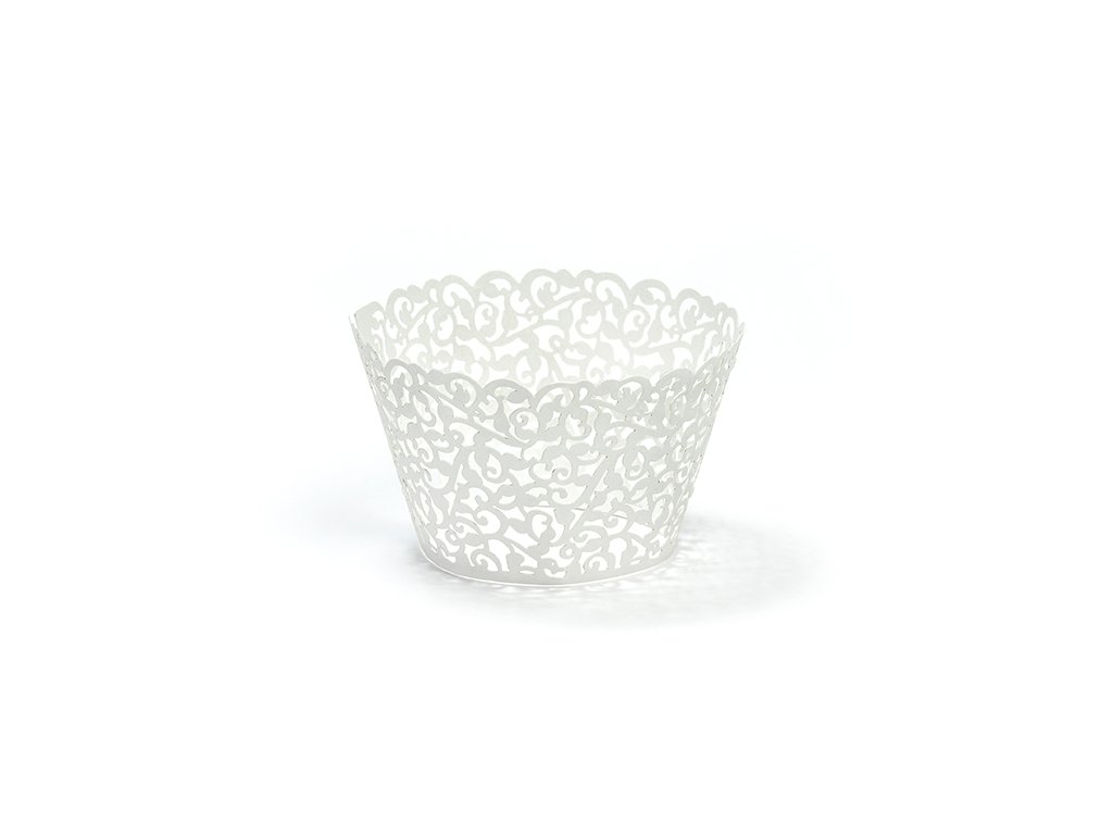 Białe koszyczki na muffinki z ornamentem