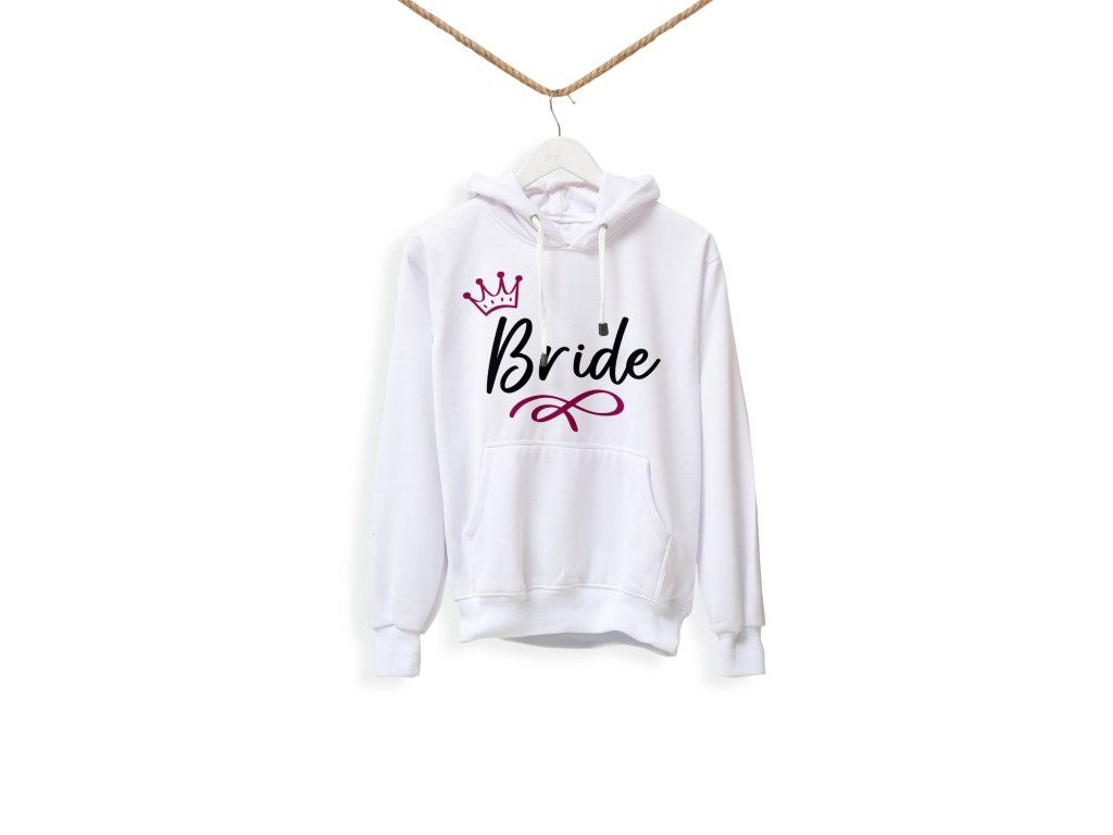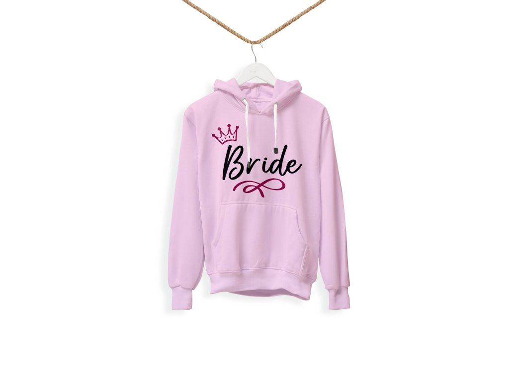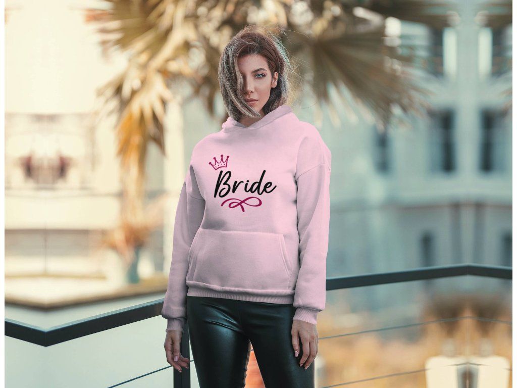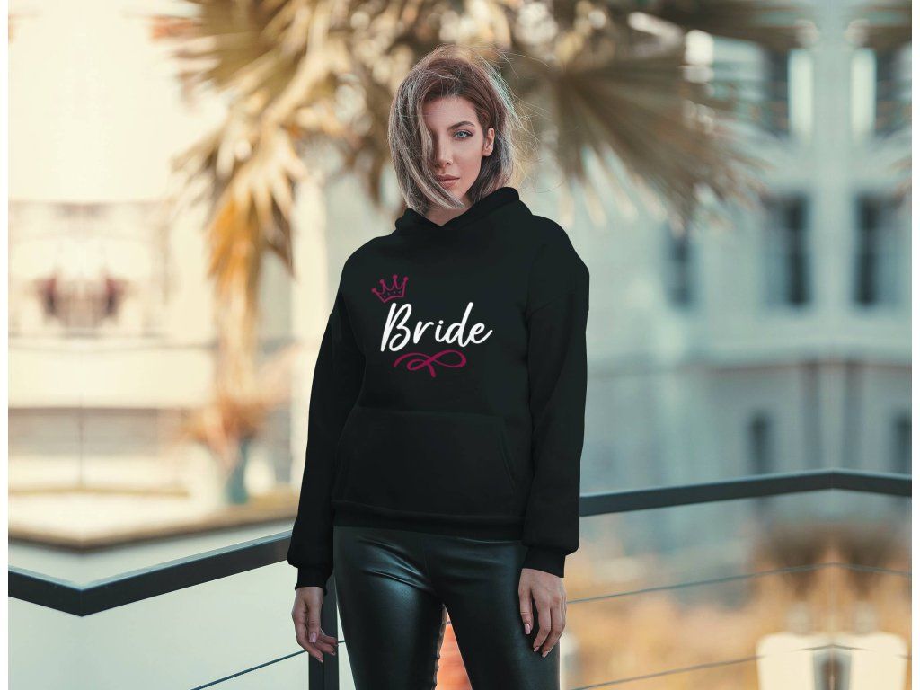 Ubierz się na niezapomniany wieczór panieński w ekskluzywną bluzę z nadrukiem "Bride". Jedyna w swoim rodzaju bluza z dobrej jakości bawełny to nie tylko ubranie, ale wyraz radości i podniosłego nastroju przed nadchodzącym wielkim dniem.