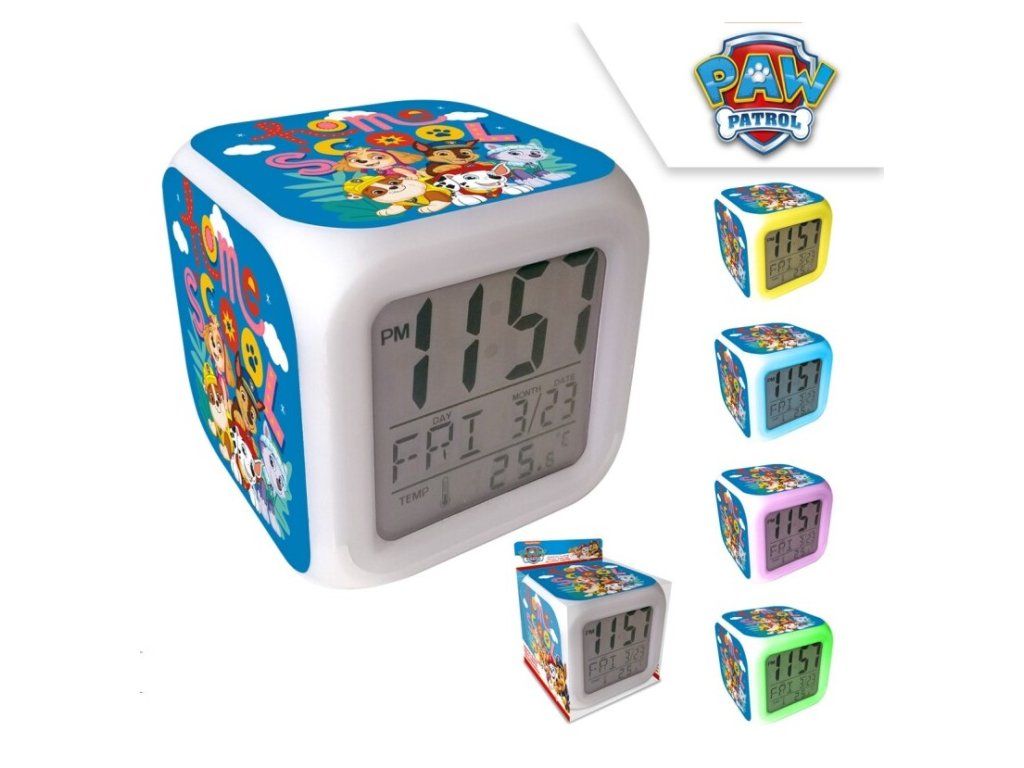 Ten budzik jest praktycznym i oryginalnym elementem dziecięcego pokoju. Motyw Psi Patrol będzie sprawiać radość każdemu miłośnikowi tej bajki. Budzik pokazuje również temperaturę i datę, których kolor można zmieniać.