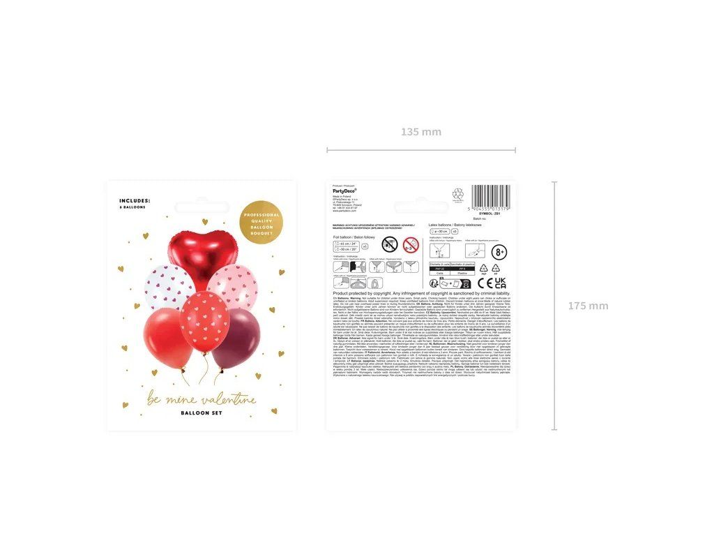 - zawiera: 5 sztuk balonów lateksowych, 1 sztuka metalicznego czerwonego balonu foliowego - 30 cm