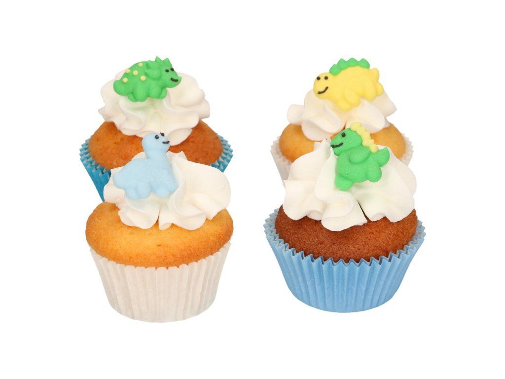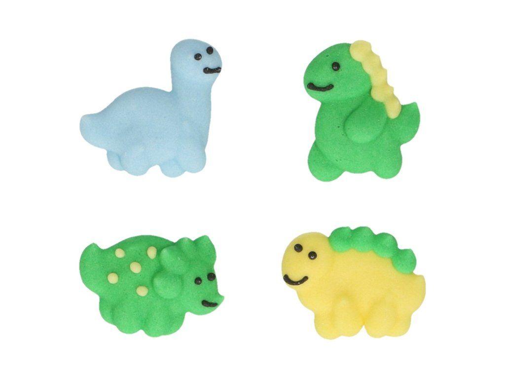 Cukrowa ozdoba Dinozaur zawiera 4 różne rodzaje dinozaurów. Doskonale nadaje się do tortów o tematyce dziecięcej, muffinsów, cupcakesów, ciast i ciasteczek. Urodzinowy tort z motywem dinozaurów zachwyci każdego małego miłośnika prehistorycznych zwierząt. Produkt nie zawiera glutenu.