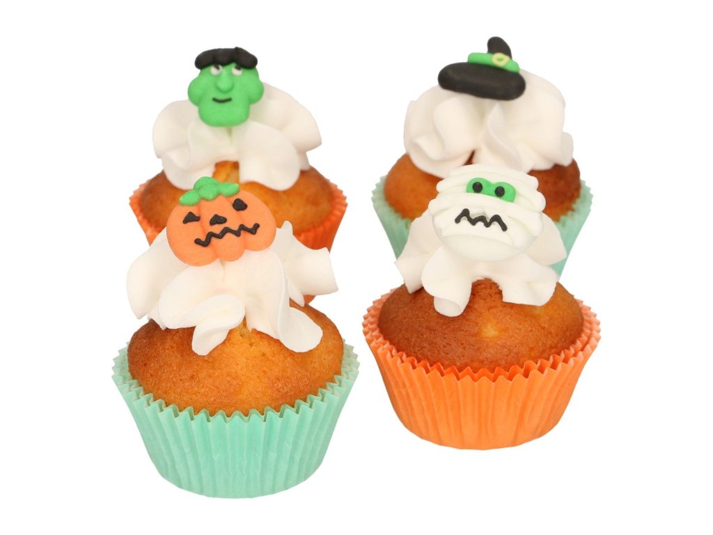Dekoracja cukiernicza jest idealna do ozdobienia halloweenowych deserów, cupcakes i muffins. Dekoracją zachwycisz niejednego gościa imprezy. Zestaw zawiera 12 dekoracji cukrowych. Produkt jest bezglutenowy.