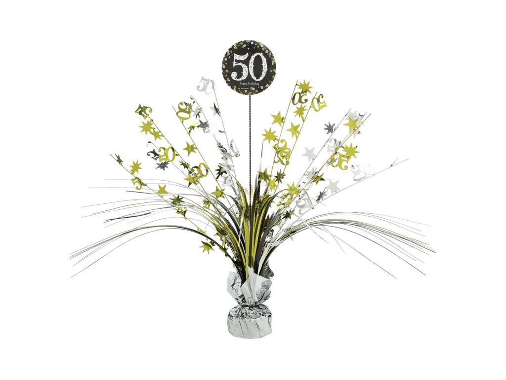Szukasz ozdób na swoją imprezę urodzinową? Ta dekoracja będzie idealna do ozdobienia stołu. Jest przeznaczona na 50. urodziny.