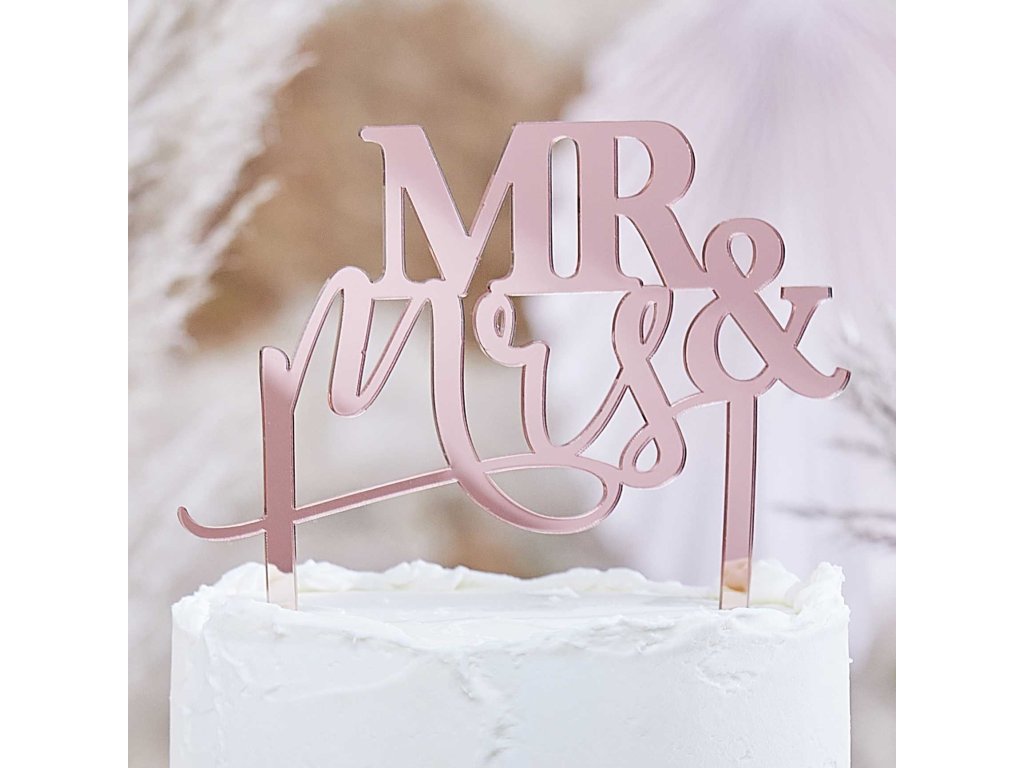 Wyjątkowa dekoracja w kolorze różowym, tworząca napis "Mr & Mrs" to idealny dodatek do tortu weselnego. Dzięki tej eleganckiej dekoracji nawet zwykły tort weselny można zamienić w wyjątkowy tort, który wszyscy będą podziwiać.