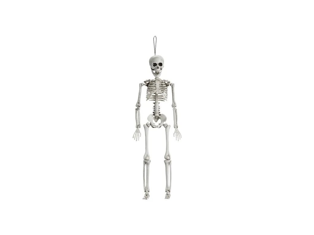 Rozkręć swoją imprezę z tym szkieletem, który zawsze ma uśmiech na twarzy (nawet jeśli innego wyrazu nie zna)! Wisząca dekoracja w postaci ludzkiego szkieletu o wysokości 40 cm jest gotowa ubarwić każdą uroczystość, Halloween czy tematyczną imprezę. Zawieś ją na drzwiach, żyrandolu lub gdziekolwiek, gdzie potrzebujesz odrobiny kostnej zabawy. Ten szkielet nigdy się nie męczy, nie odejdzie i zawsze dotrzyma Ci towarzystwa – bo przecież dobrych kości nigdy za wiele!
