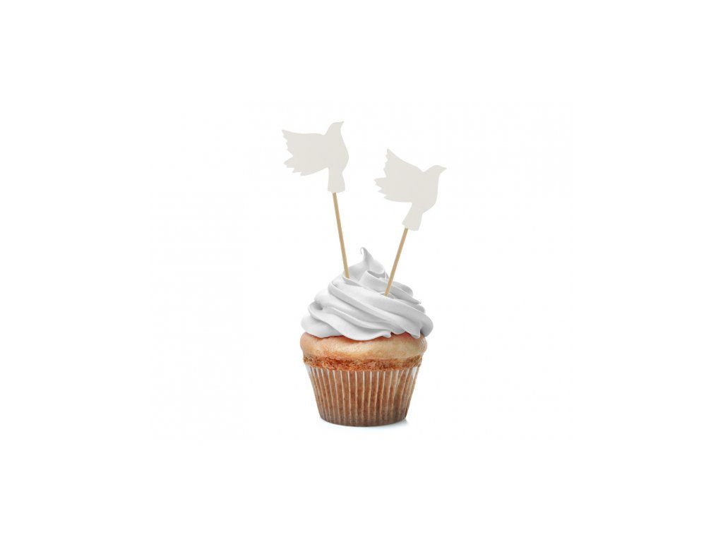 Dekoracje na babeczki - Białe gołębie 12 szt.