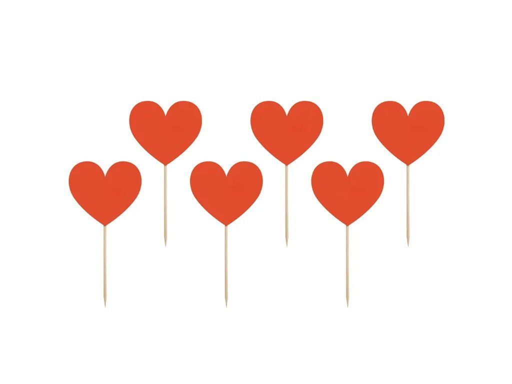 Dekoracje na babeczki - Czerwone serduszka 6 szt