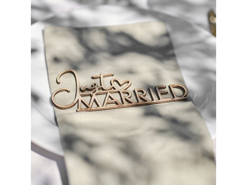 Ozdób miejsca siedzące dla swoich gości. Ta drewniana dekoracja "Just Married" to doskonały sposób na uzupełnienie dekoracji Twojego stołu weselnego. W połączeniu z jasnymi elementami stworzysz piękne, eleganckie nakrycie stołu. Uczyń swój świąteczny stół wyjątkowym.