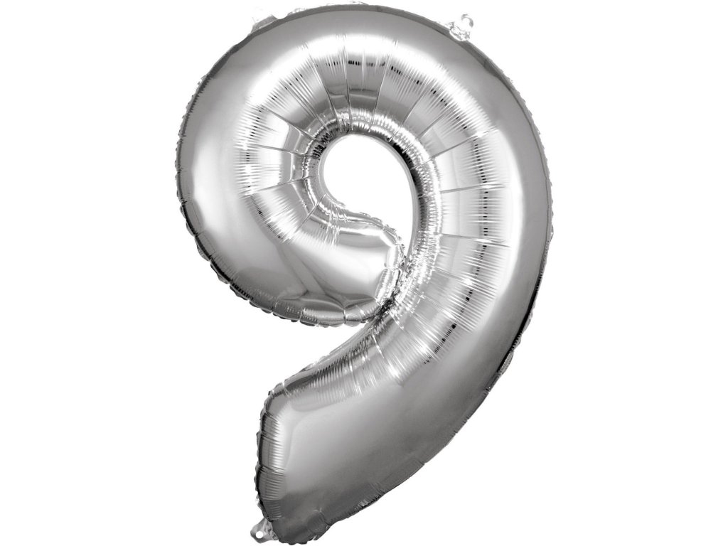 Balonik foliowy cyfra na urodziny 9 srebrny 86 cm