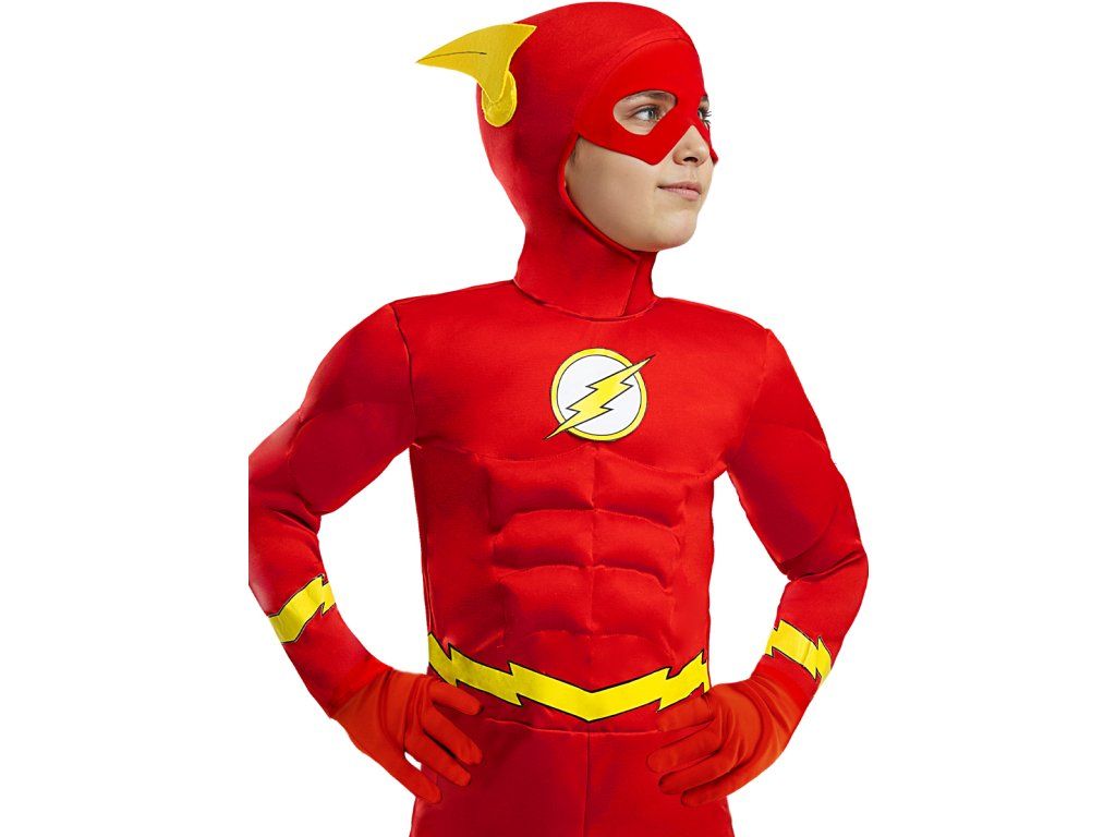 - nadrukowany kombinezon z mięśniami, dzięki czemu Twój mały Flash będzie wyglądał jak prawdziwy mięśniak