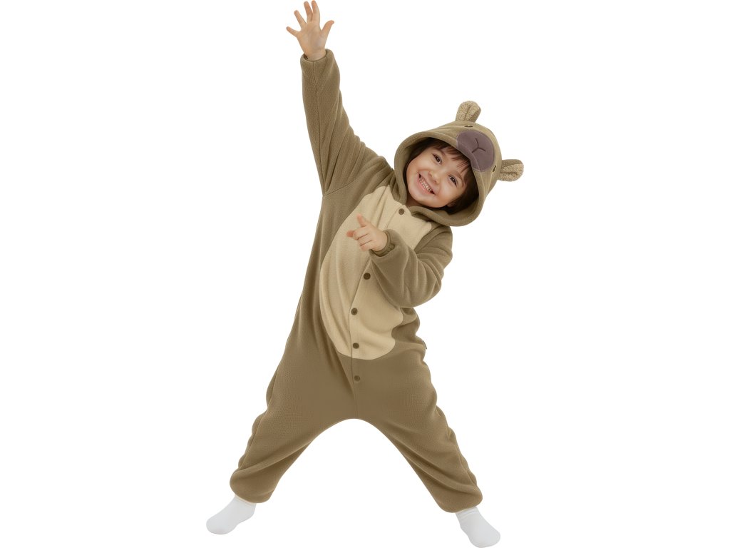 Przygotuj się na solidną dawkę zabawy! Dzięki temu uroczemu dziecięcemu kostiumowi kapibary Twoje dziecko przemieni się w największego luzaka dżungli.