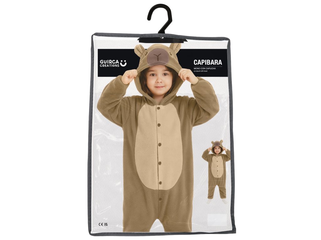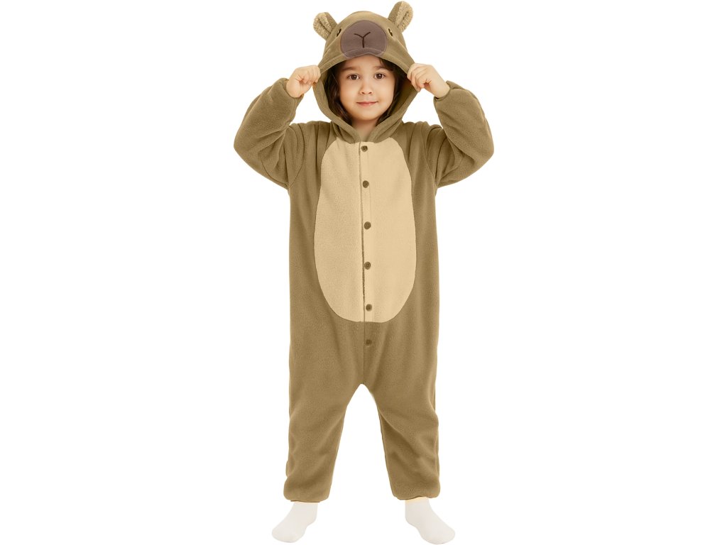 Mięciutki kombinezon z uroczym kapturem-kapibarą sprawi, że każdy uśmiechnie się już na pierwszy rzut oka. Idealny na karnawał, przyjęcia lub po prostu do domowych zabaw. Wystarczy założyć i przygoda może się zacząć – kapibara przecież jest przyjacielem każdego zwierzaka i człowieka!