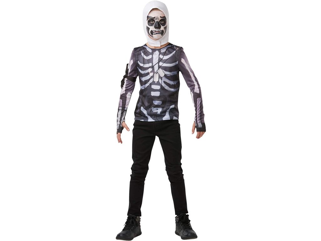 Twój karnawałowy lub halloweenowy kostium będzie wyglądać bardziej wiarygodnie dzięki takim dodatkom jak ten zestaw – dziecięca bluza i czapka Skull Trooper z gry komputerowej Fortnite. Ten dodatek pasuje do różnych kostiumów karnawałowych o tematyce gier komputerowych – ogranicza Cię tylko Twoja wyobraźnia.