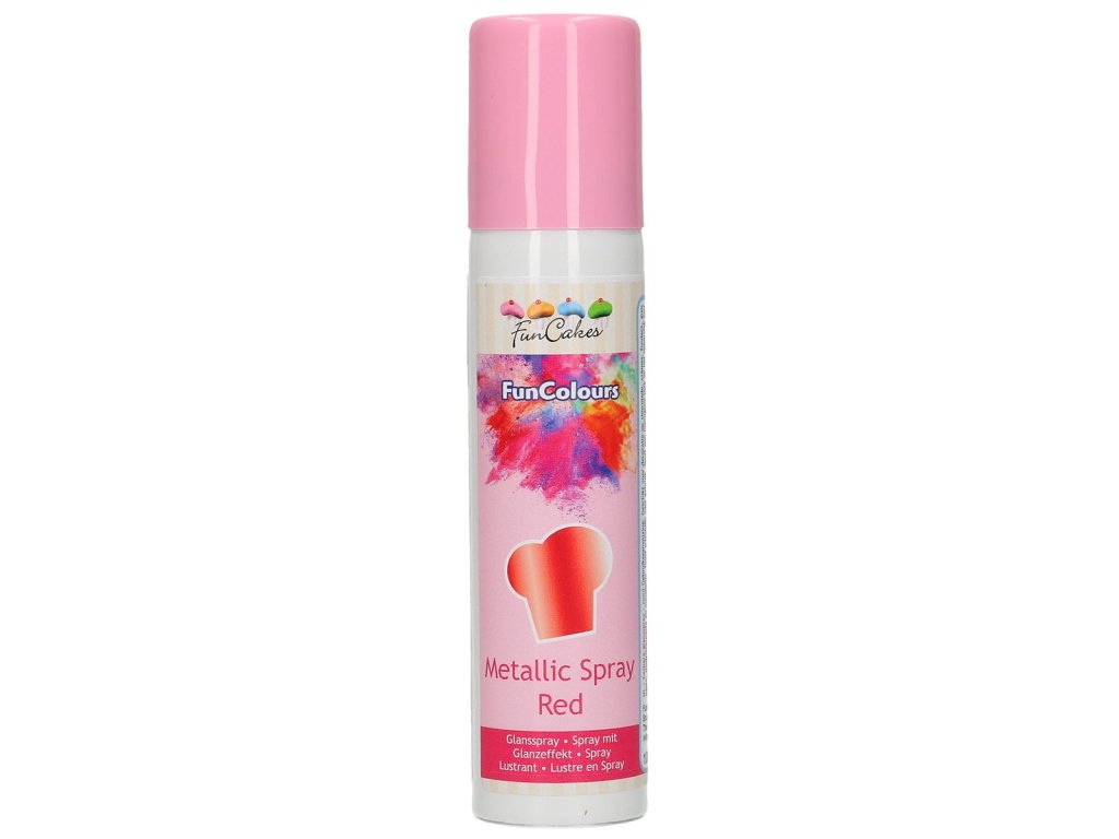 Farba w spreju Metallic Red czerwona idealna do barwienia mas modelujących, fondantów, pasty gumowej, kremów, czekolady i innych ozdobnych elementów wypieków. Tworzy żywe i oryginalne wykończenie deserów, sprawiając że lśnią i przyciągają uwagę. Pasuje przede wszystkim do luksusowych weselnych tortów. Jadalny sprej jest pełnowartościowym zamiennikiem airbrush.