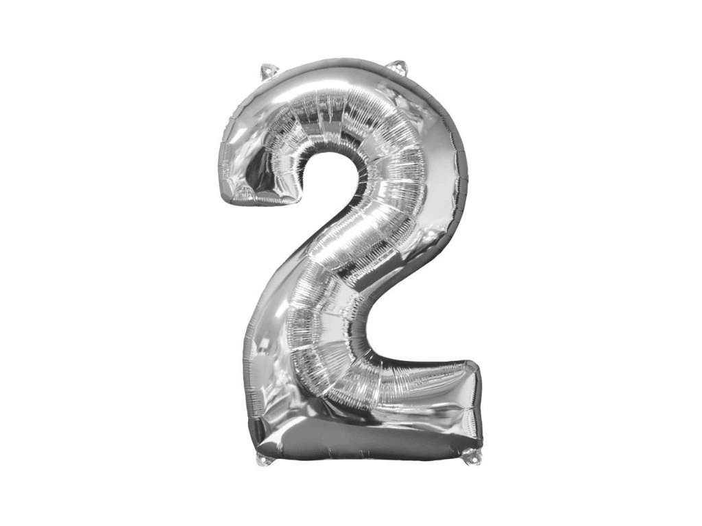Foliowy balon – urodzinowa cyfra 2 – srebrny 66 cm