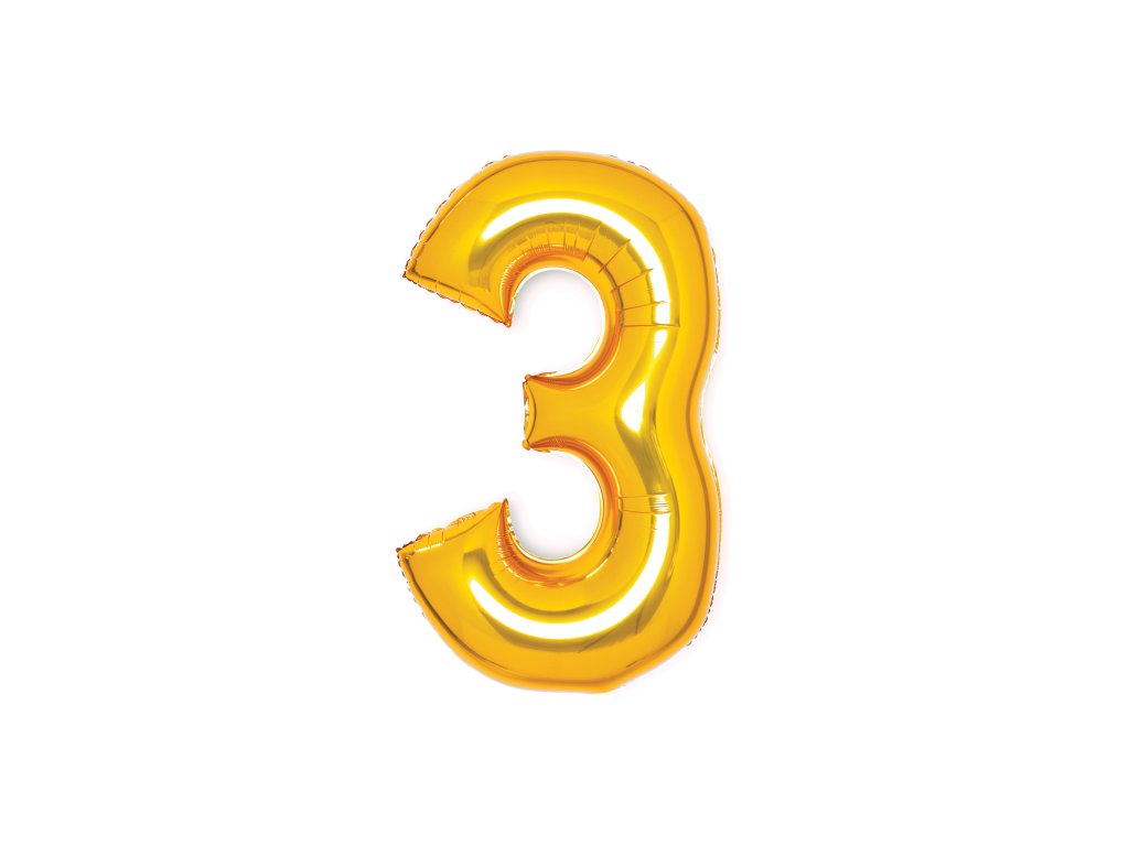Foliowy balon – urodzinowa cyfra 3 – złoty 66 cm