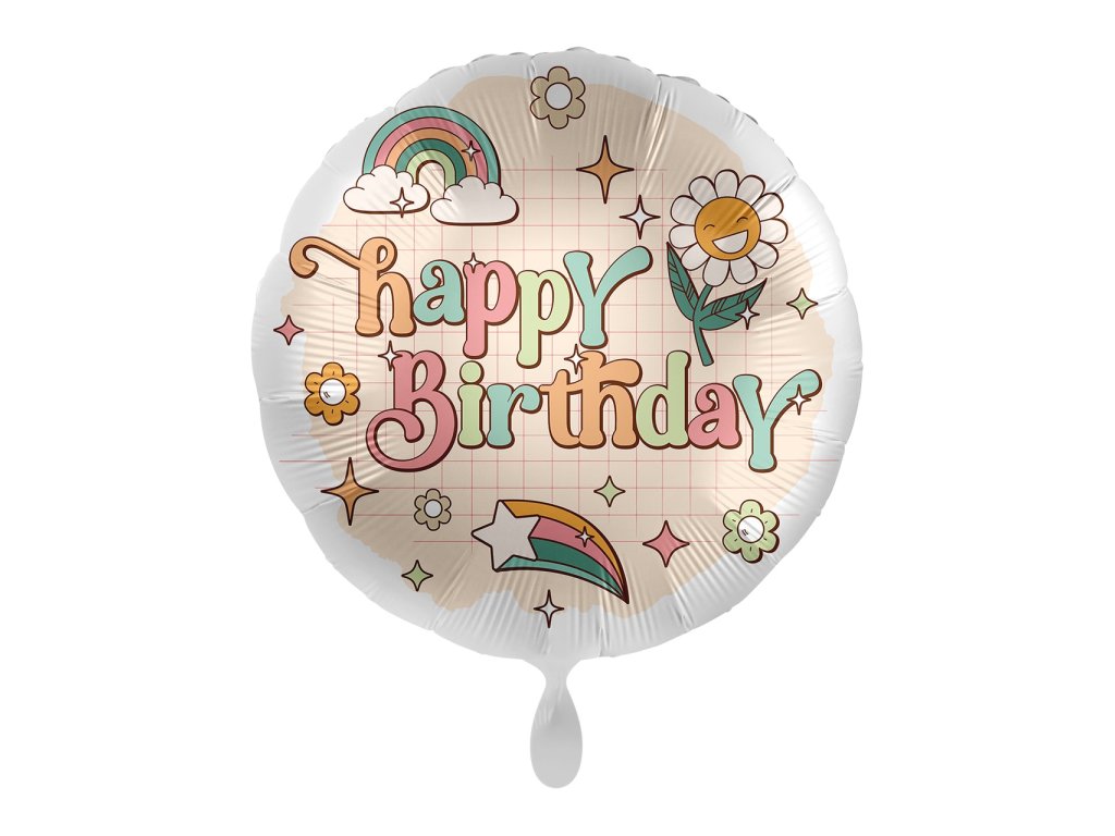 Świętuj urodziny w wielkim stylu z tym foliowym balonem Happy Birthday w retro designie! Ten balon o średnicy 43 cm wykonany jest z wysokiej jakości folii, co gwarantuje trwałość i żywe kolory. Wystarczy napompować go powietrzem lub helem i impreza może się zacząć! Dzięki swojemu radosnemu retro wyglądowi rozświetli każde wnętrze i natychmiast wprowadzi odpowiednią, urodzinową atmosferę. Idealny jako dekoracja na stół, do fotobudki lub jako oryginalny prezent. Przygotuj się na sporą dawkę radości i wspomnień z dawnych, dobrych czasów – ten balon jest technicznie gotowy na każdą imprezę!