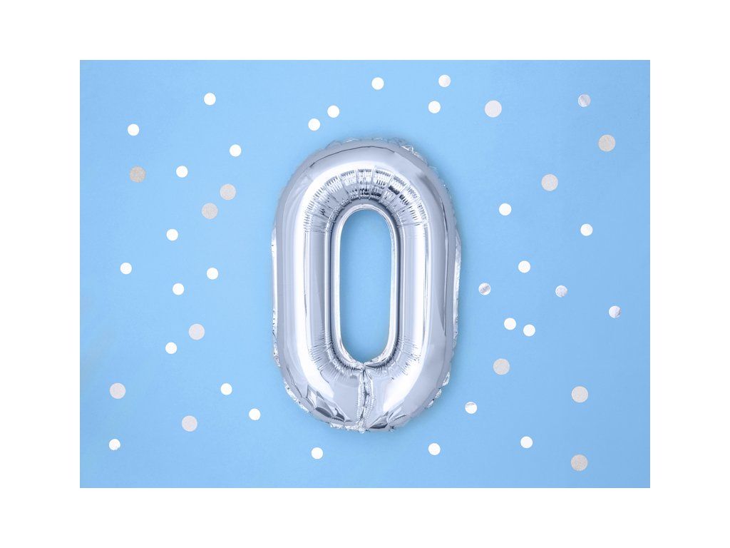 Foliowy balon mini – cyfra 0 srebrny 35 cm