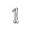 Foliowy balon mini – cyfra 1 srebrny 35 cm