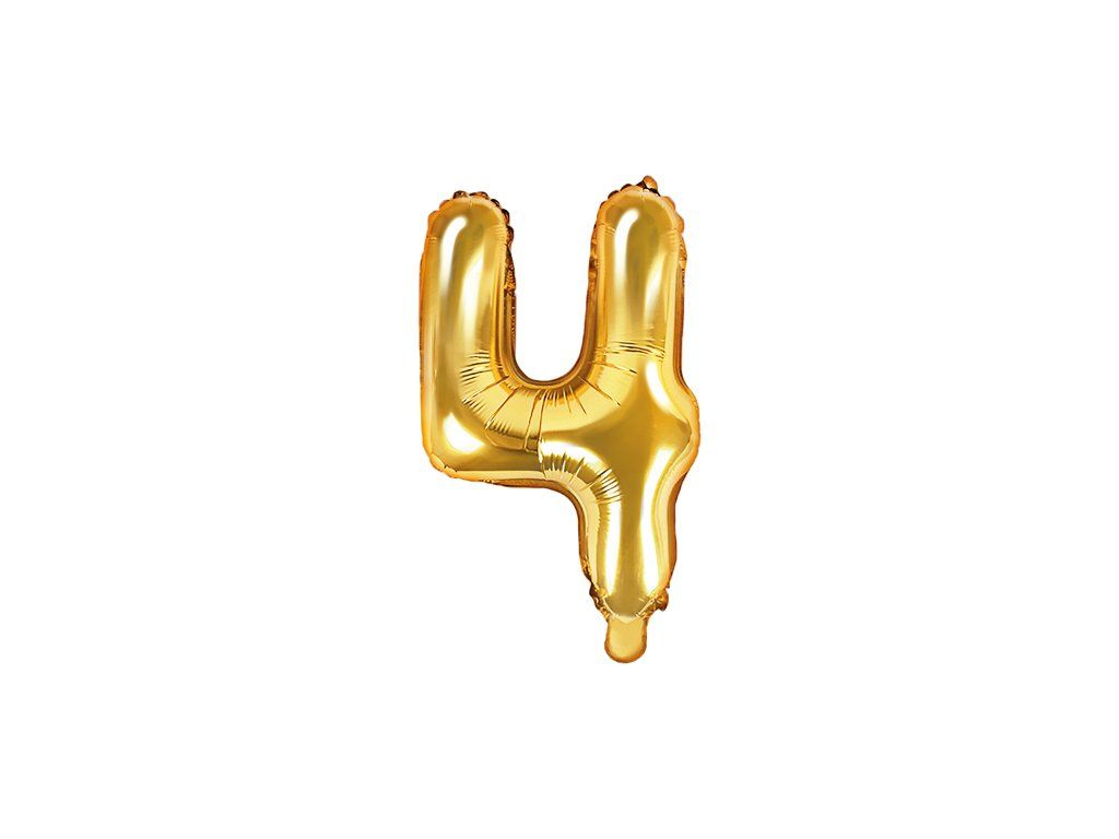 Foliowy balon mini – cyfra 4 złoty 35 cm