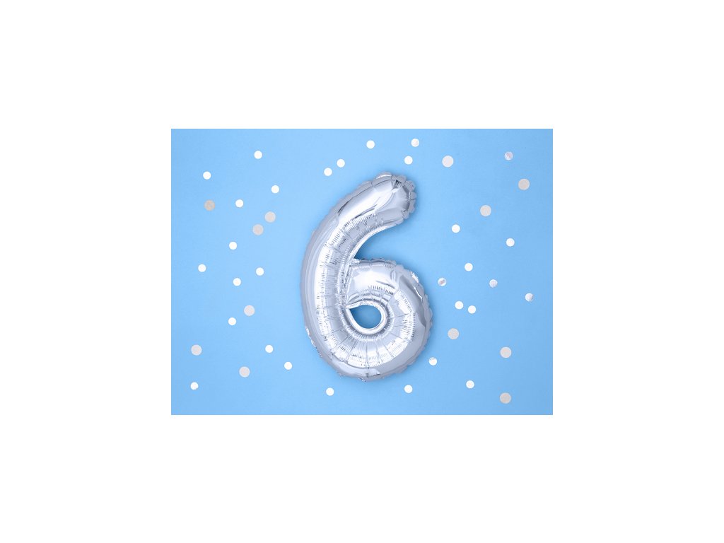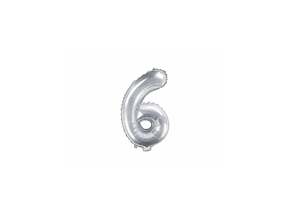 Foliowy balon mini – cyfra 6 srebrny 35 cm
