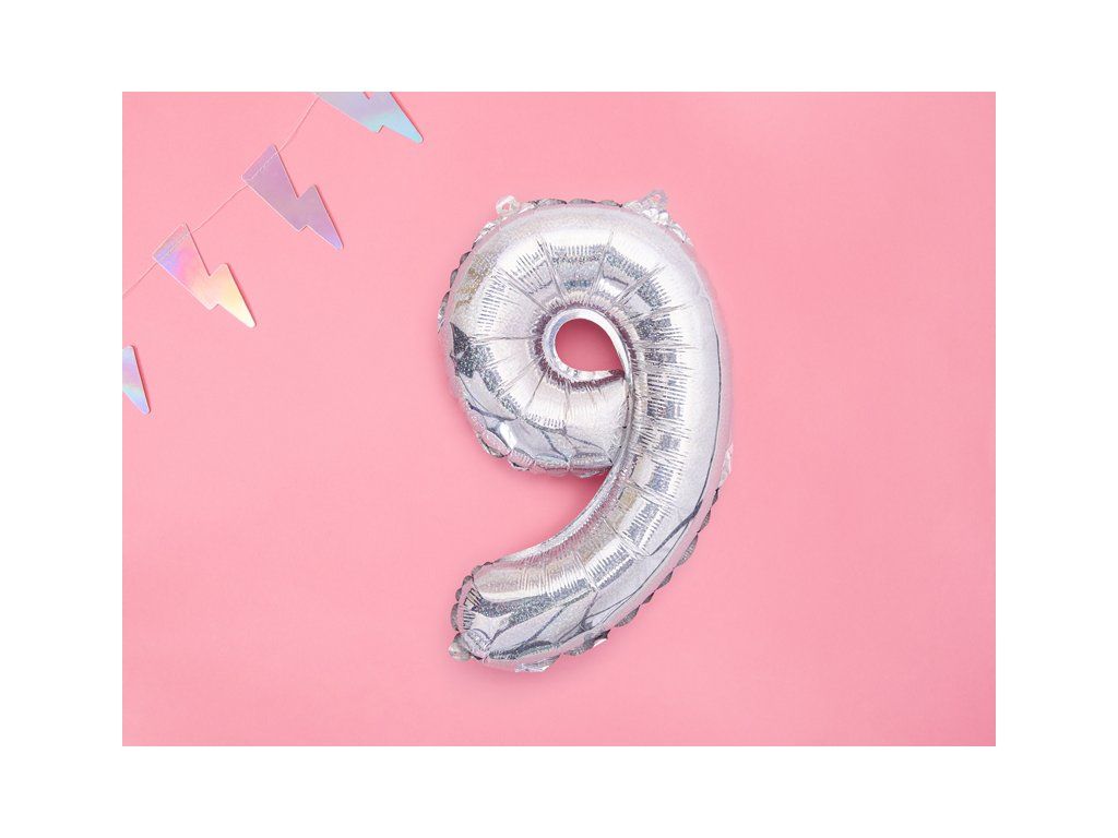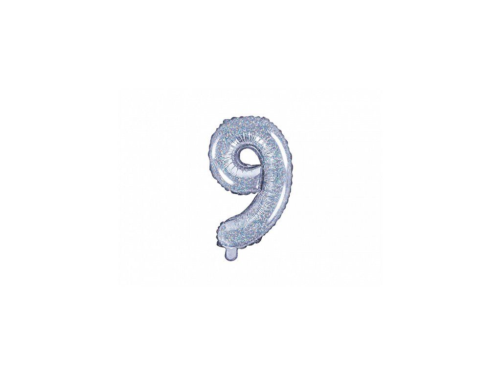 Foliowy balon mini – cyfra 9 holograficzny 35 cm