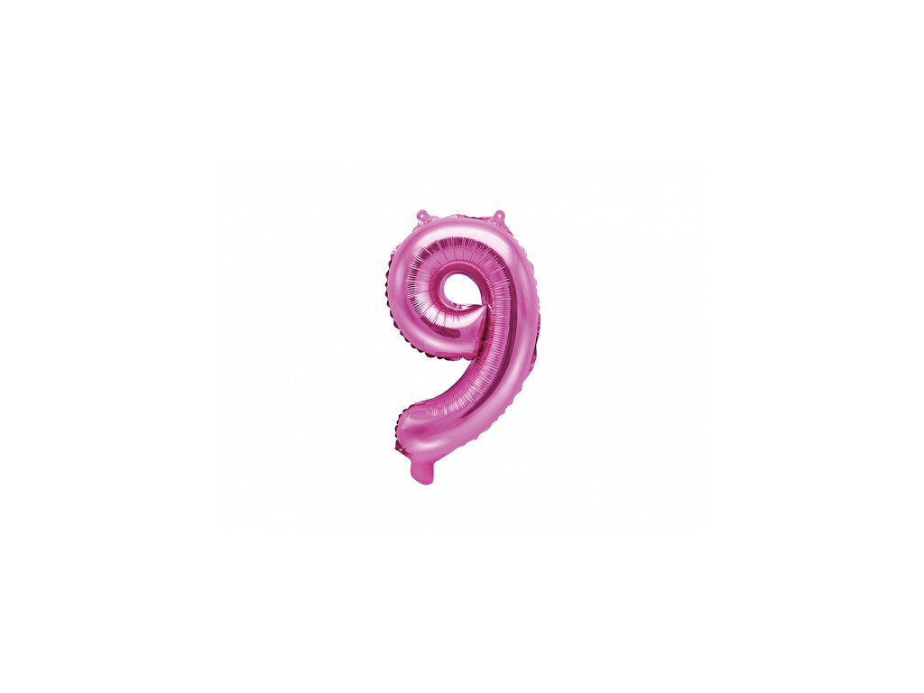 Foliowy balon mini – cyfra 9 różowy 35 cm