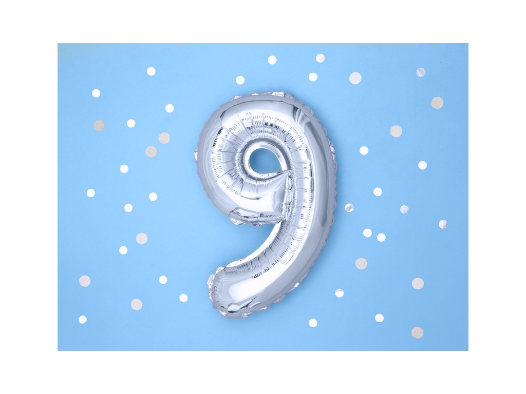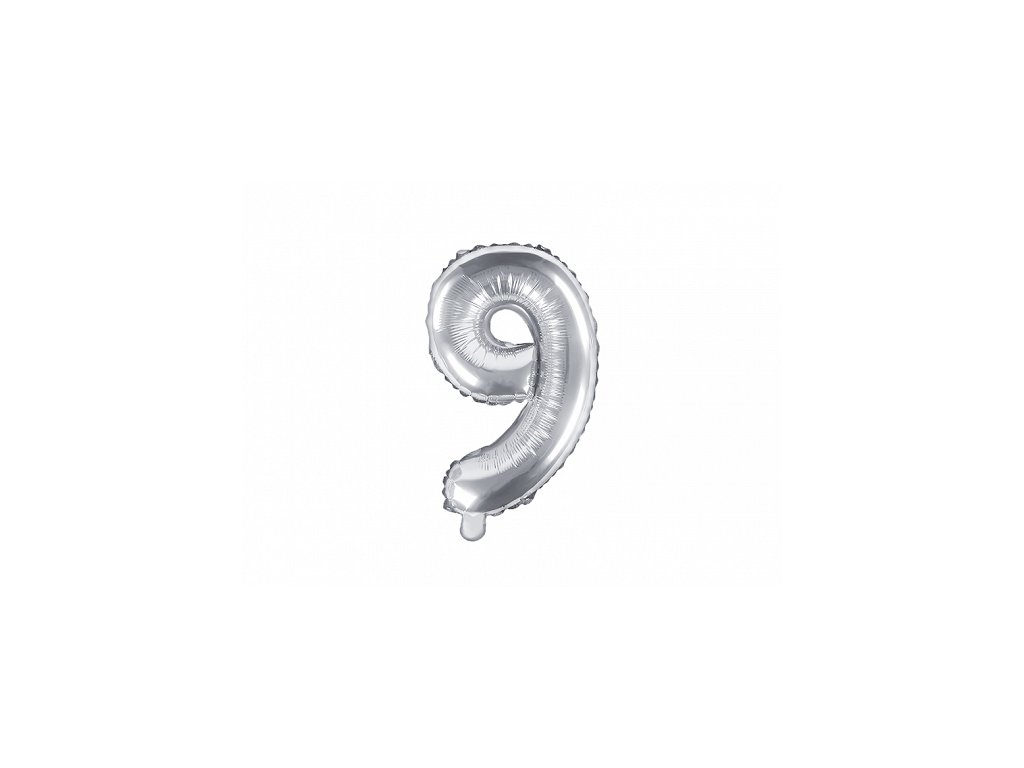 Foliowy balon mini – cyfra 9 srebrny 35 cm