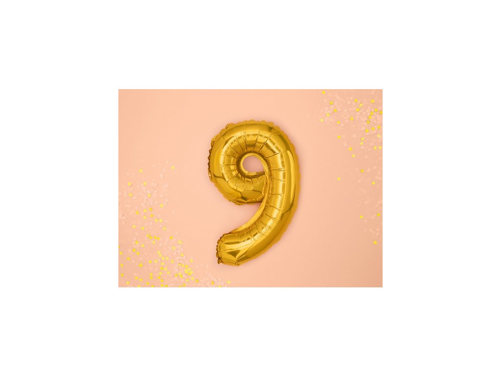 Foliowy balon mini – cyfra 9 złoty 35 cm
