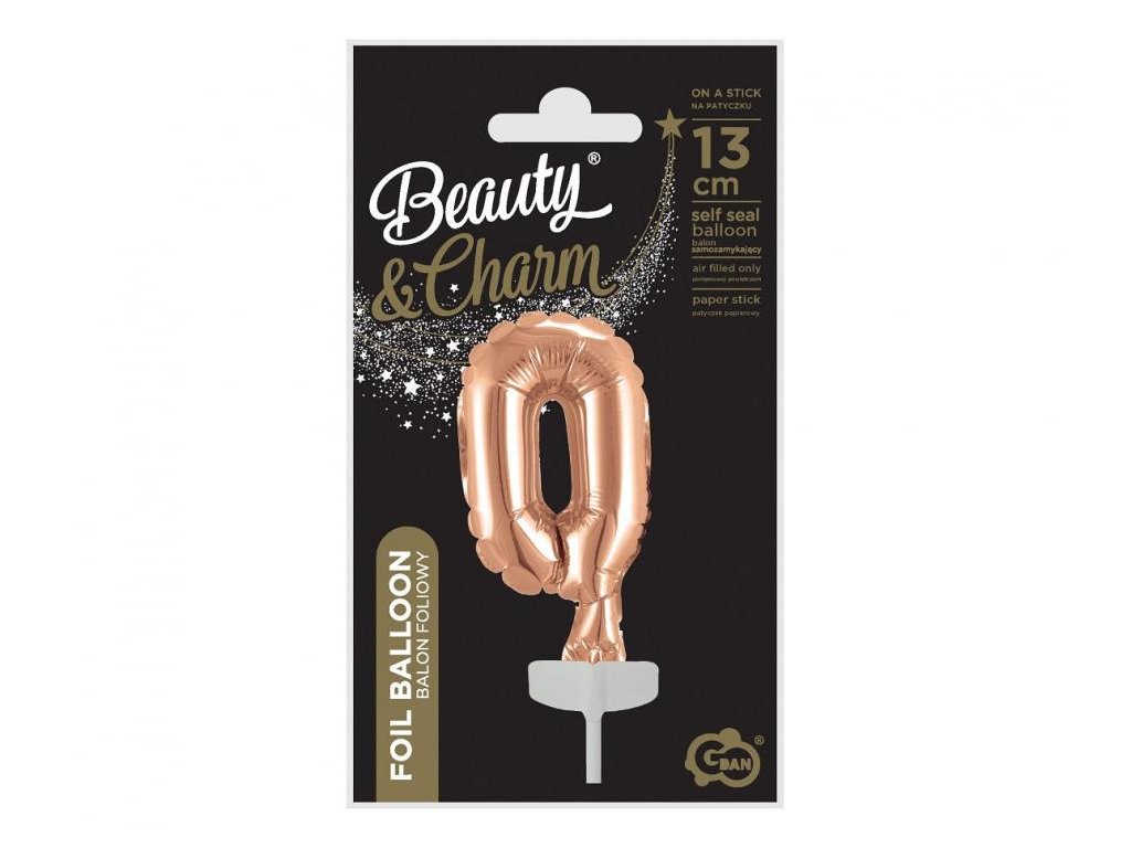 Foliowy balonik na tort - cyfra 0, różowo-złota