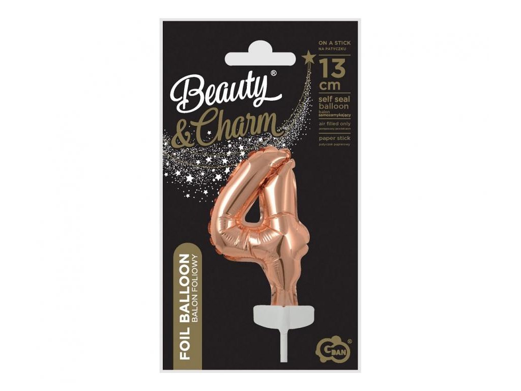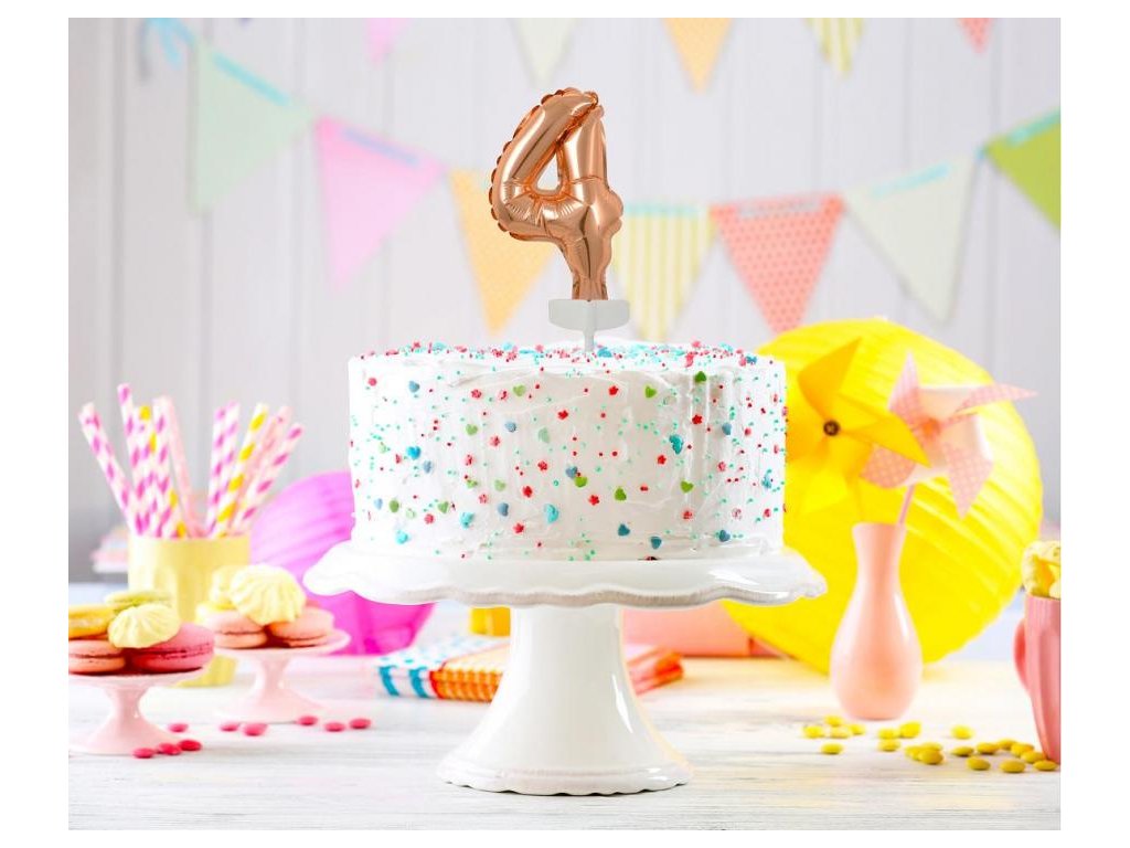 Foliowy balonik na tort - cyfra 4, różowo-złota