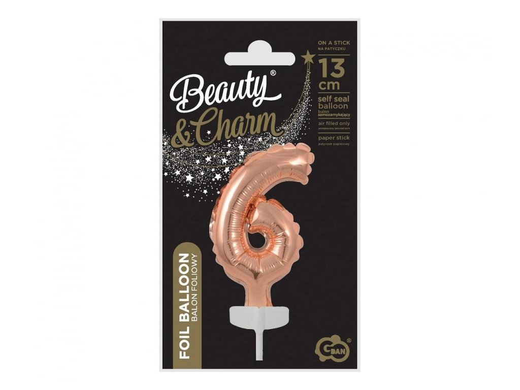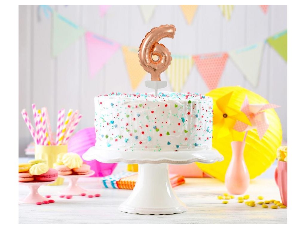 Foliowy balonik na tort - cyfra 6, różowo-złota