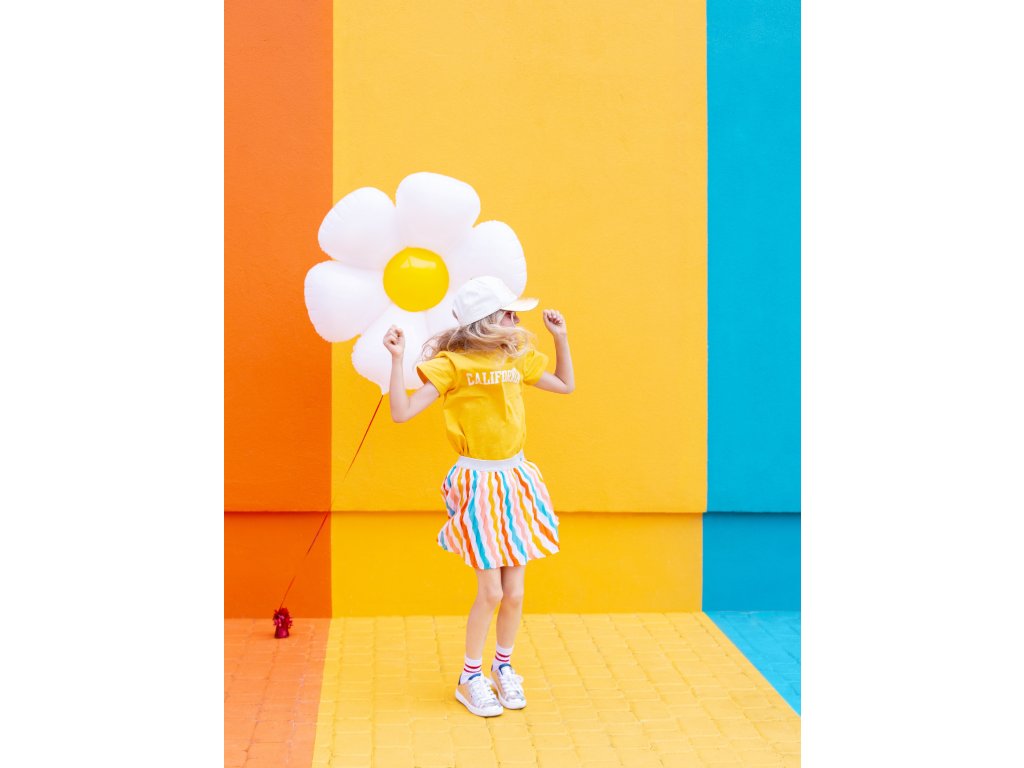 Rozświetl każdą imprezę tym foliowym balonem w kształcie stokrotki! O wymiarach 70 x 80 cm stanie się nieodzowną ozdobą urodzinowego przyjęcia, dziecięcej zabawy lub każdej radosnej okazji.